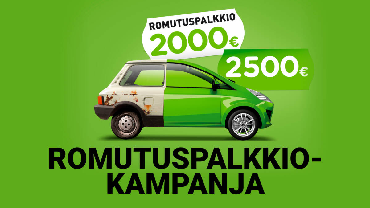 Romutuspalkkiokampanja toteutetaan Suomessa neljännen kerran 1.1.2026-31.12.2027. Valtio myöntää 2 000 euroa romutuspalkkiota sellaisen uuden henkilöauton hankintaan, jonka hiilidioksidipäästöt ovat enintään 140 g/km. Uusille nollapäästöisille sähköautoille valtion romutuspalkkio on 2 500 euroa.