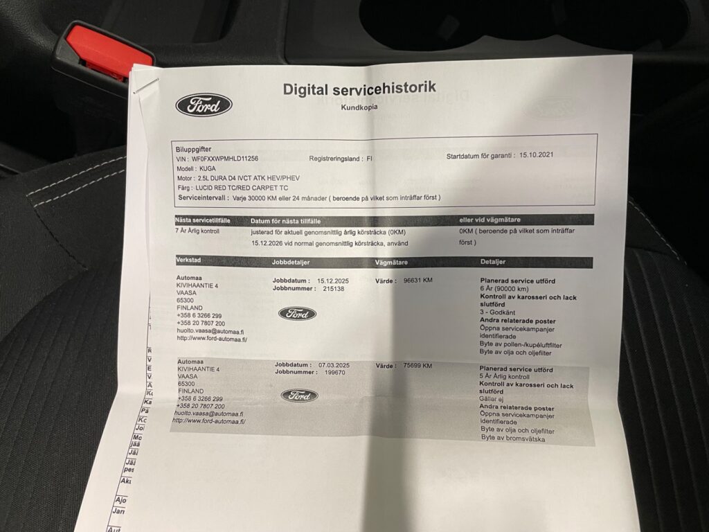 - Viimeisin huolto tehty 12/2025