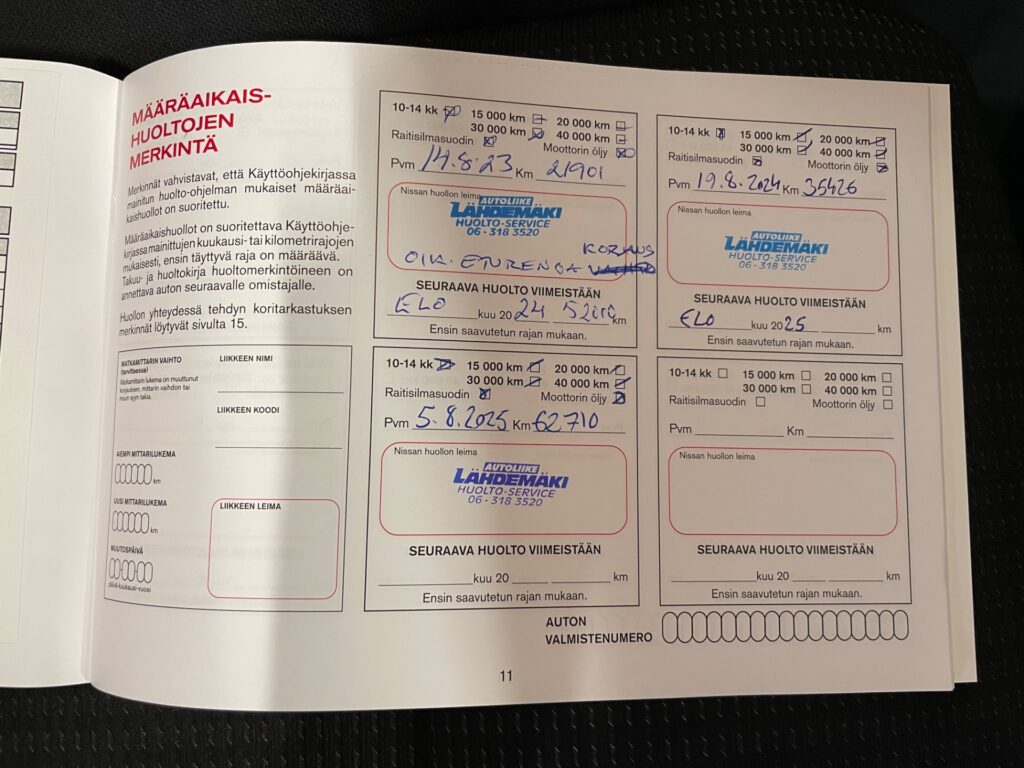- Täydellinen merkkiliikkeen huoltokirja