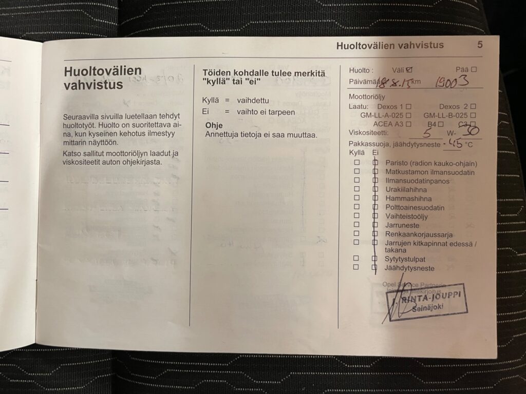 - Huoltokirja, hyvin huollettu