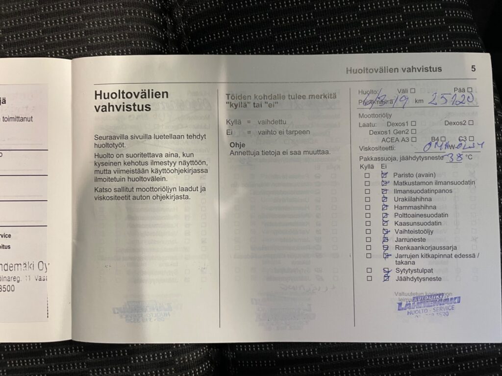 - Täydellinen merkkiliikkeen huoltokirja