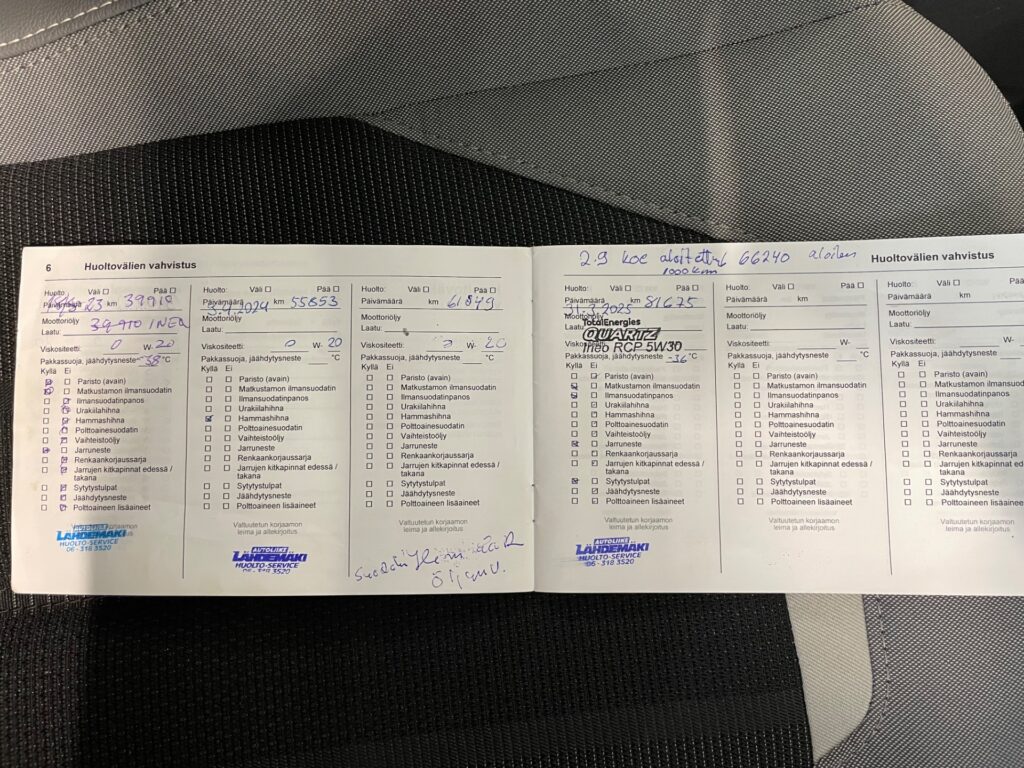 - Täydellinen merkkiliikkeen huoltokirja, Jakohihna vaihdettu