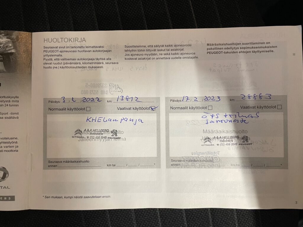 - Viimeisin huolto tehty 2/2026