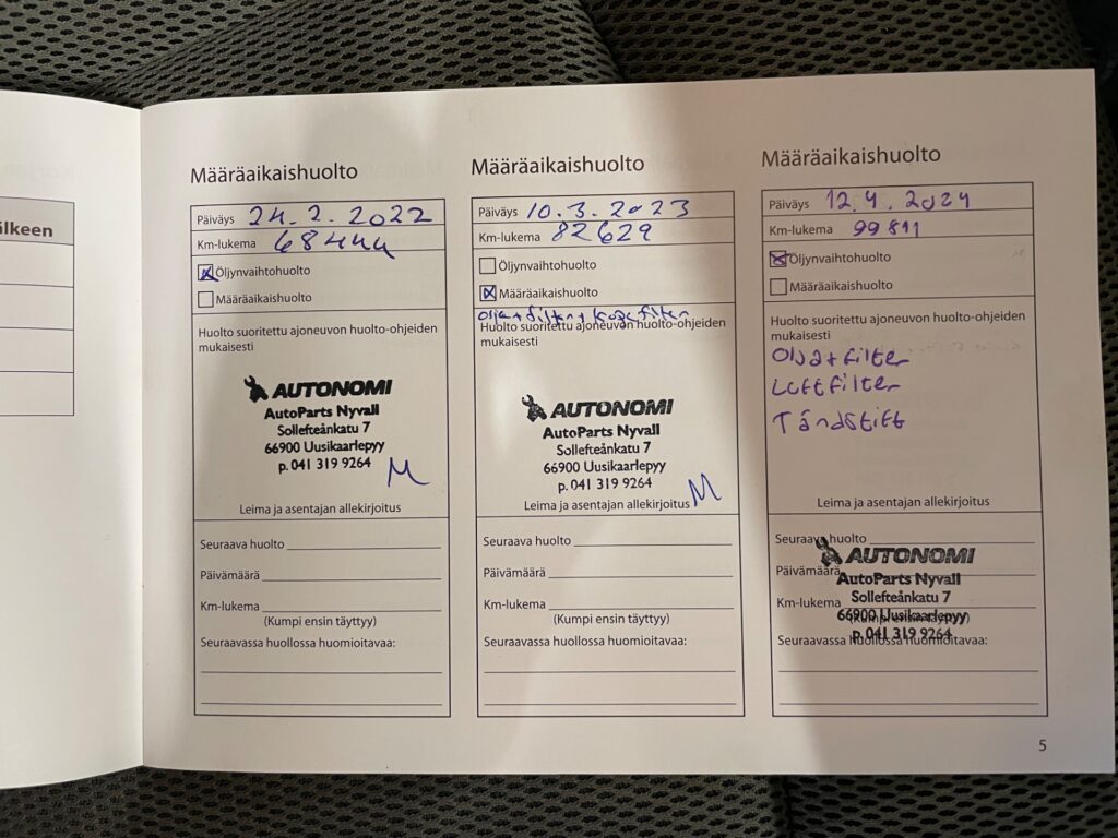 - Täydellinen huoltokirja